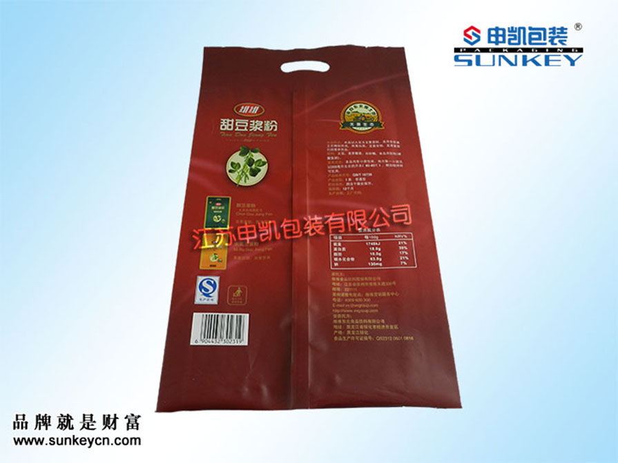 说明:防潮豆浆粉铝箔袋材质一般是由PET/AL/PE组成,经过印刷-检品-复合-制袋等多层工艺。